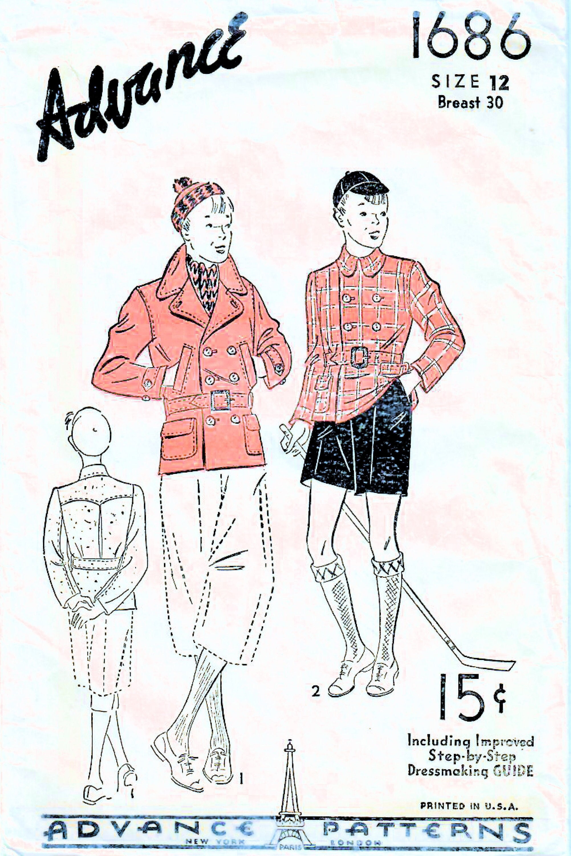 1930s Advance 1686 Vintage Sewing Pattern Boys Sports Jacket Etsy