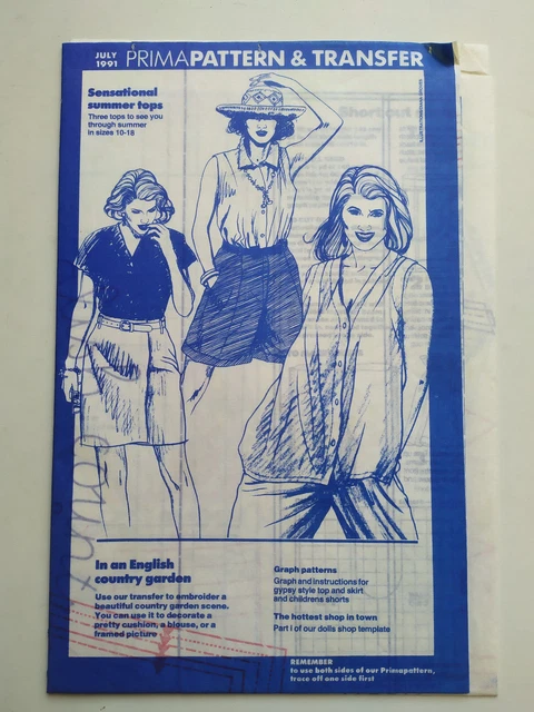 Prima Magazine July 1991 Sewing Pattern Three Summer Tops 3 49 Picclick Uk